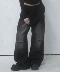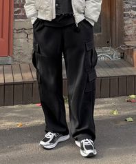 와이드 카고 더블 포켓 롱 팬츠 [BLACK]