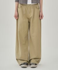 W 코튼 턱 와이드 팬츠 (BEIGE)