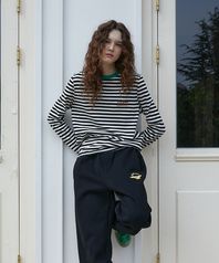 Chain-Needlework Stripe Tee (Black)