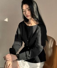 옹드 보트넥 블라우스-블랙