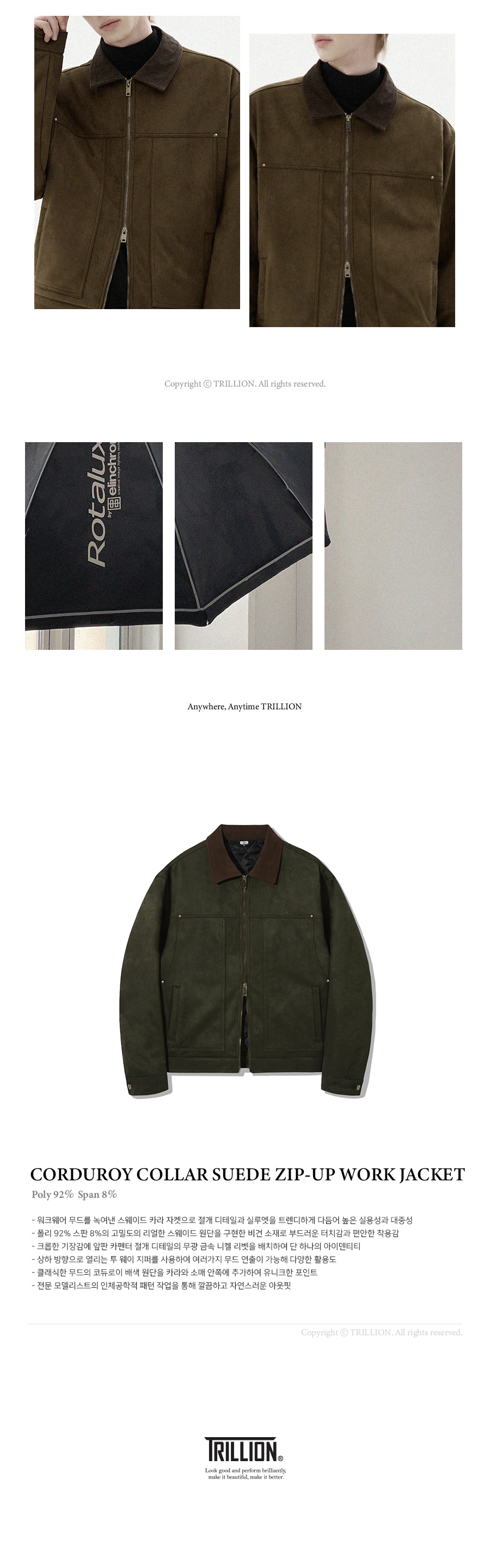 트릴리온(TRILLION)은 클래식, 빈티지, 아웃도어, 어반 등의 스타일을 베이스로 트릴리온만의 컨템포러리 감성을 더해 높은 퀄리티의 제품을 합리적인 가격에 제시합니다. 단 하나의 제품에도 만족감을 느낄 수 있는 가치를 추구합니다.