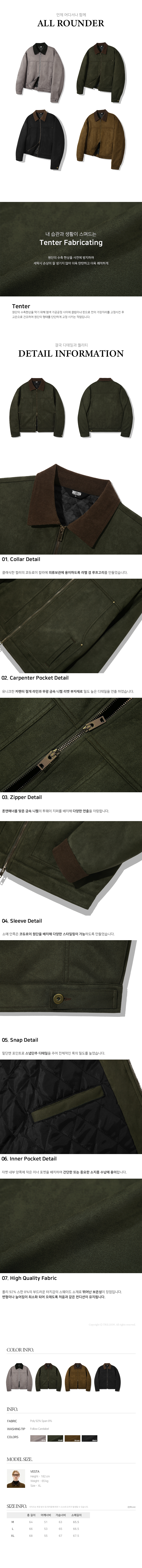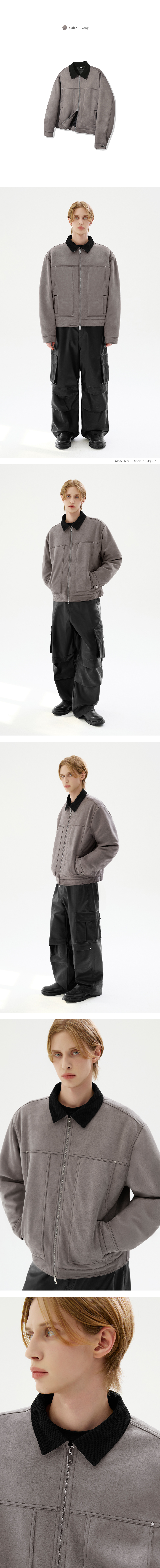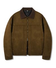 코듀로이 카라 스웨이드 집업 워크 자켓 [카키]