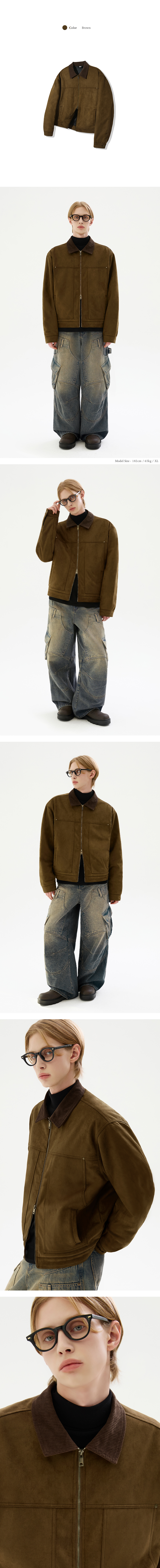 코듀로이 카라 스웨이드 집업 워크 자켓 [브라운]