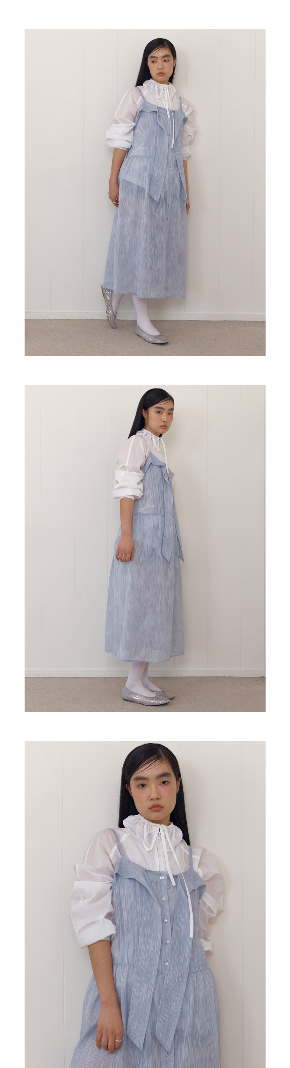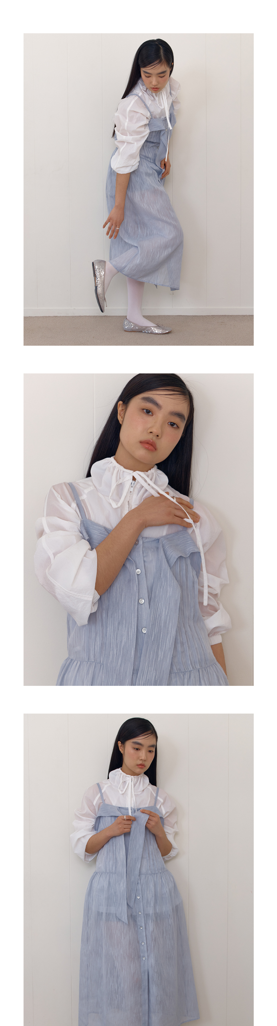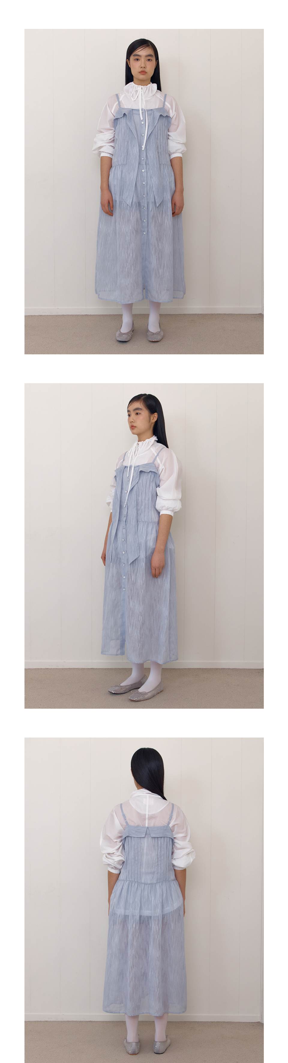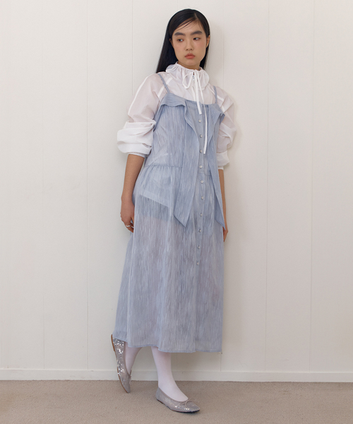 SHEER RIBBON TIE DRESS_BLUE