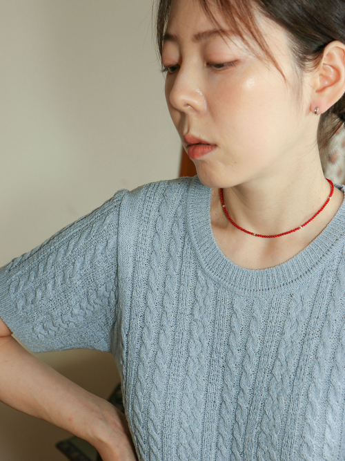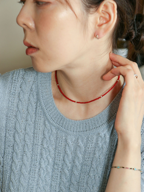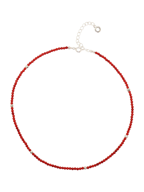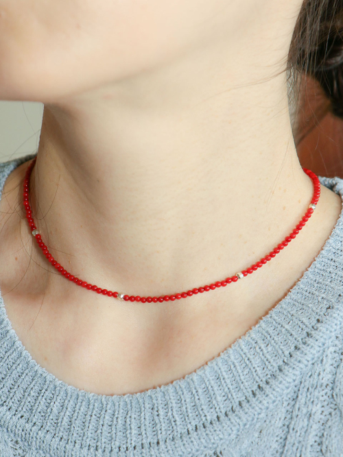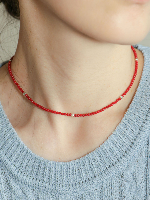 Coral Beads Line Silver Necklace In528