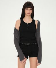 우먼즈 헨리 넥 탱크 탑 [블랙]