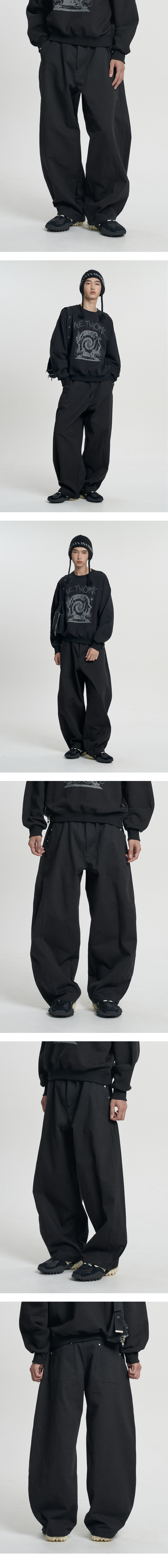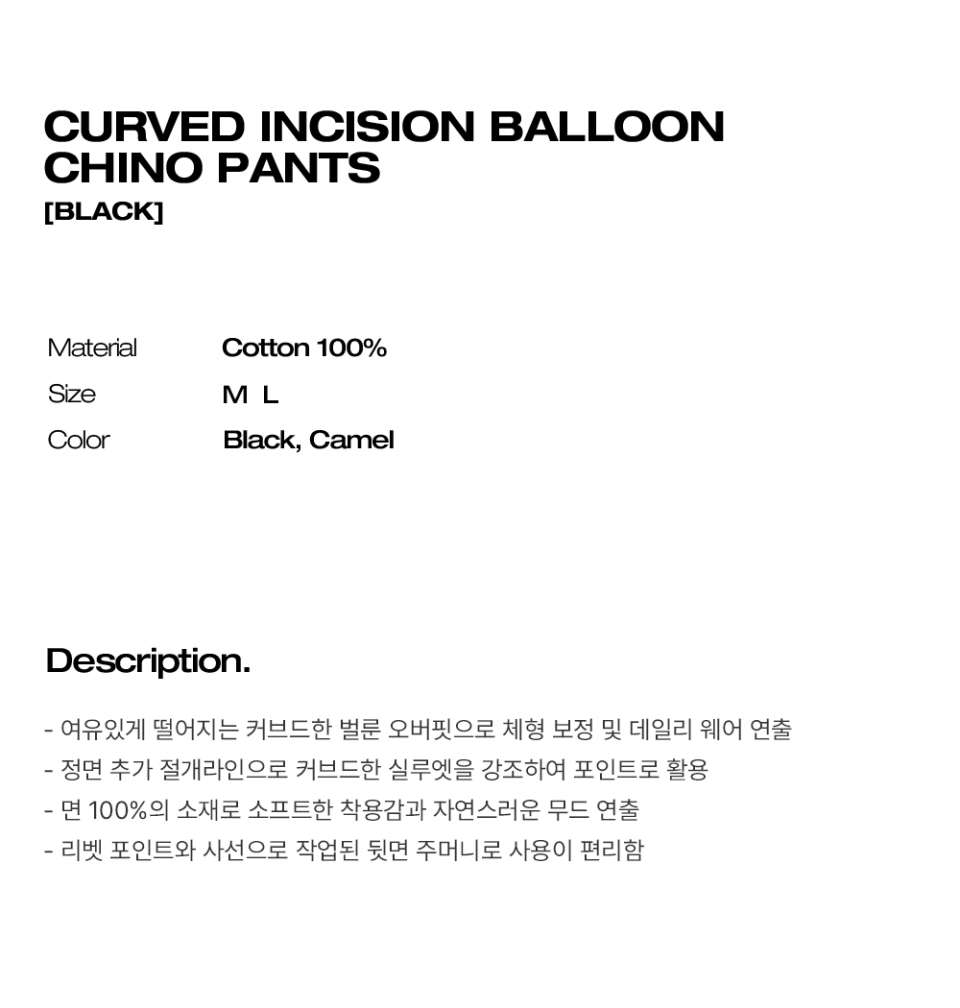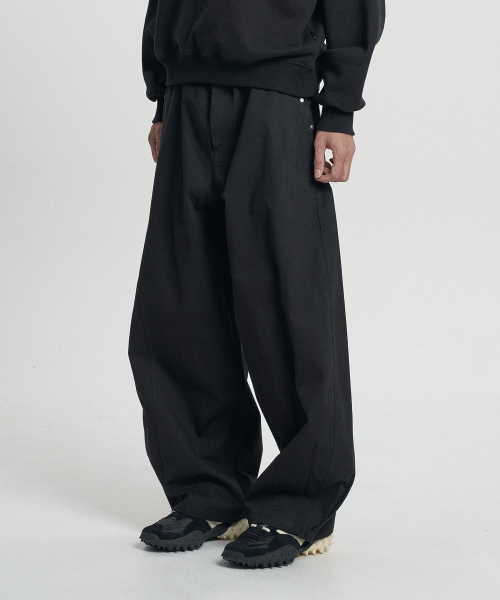 커브드 인시젼 벌룬 치노 팬츠 - 블랙