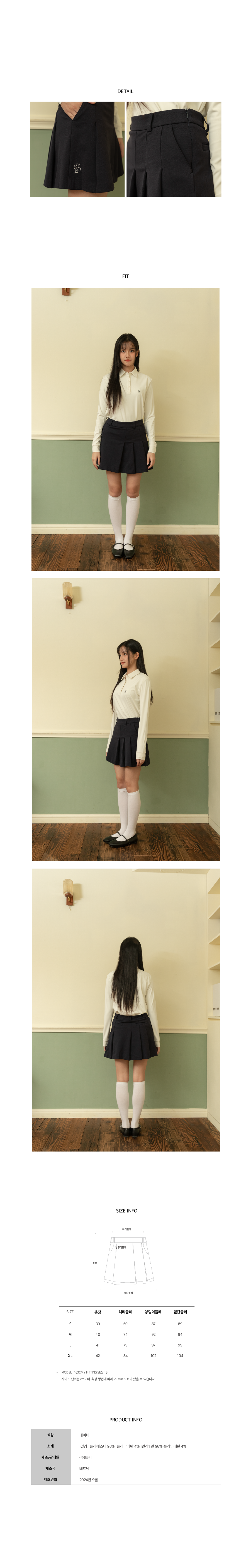 여성 베이직 로고 언발 플리츠 스커트 네이비