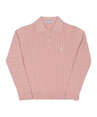여성 컬러 포인트 케이블 카라 니트 핑크