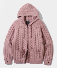 2WAY 헤비웨이트 케이블 니트 후드 집업_더스티 핑크