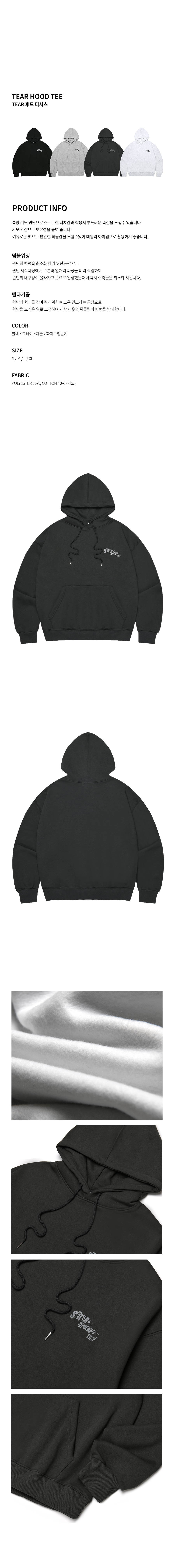 TEAR 후드 티셔츠 - 차콜