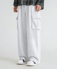 원턱 와이드 카고 스웨트 팬츠 [그레이]