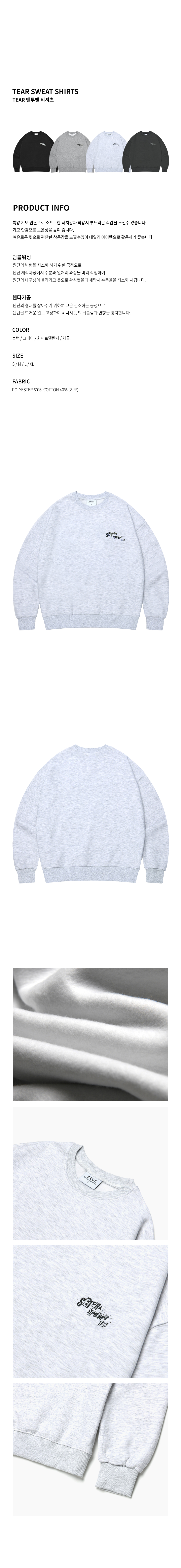 TEAR 맨투맨 티셔츠 - 화이트 멜란지