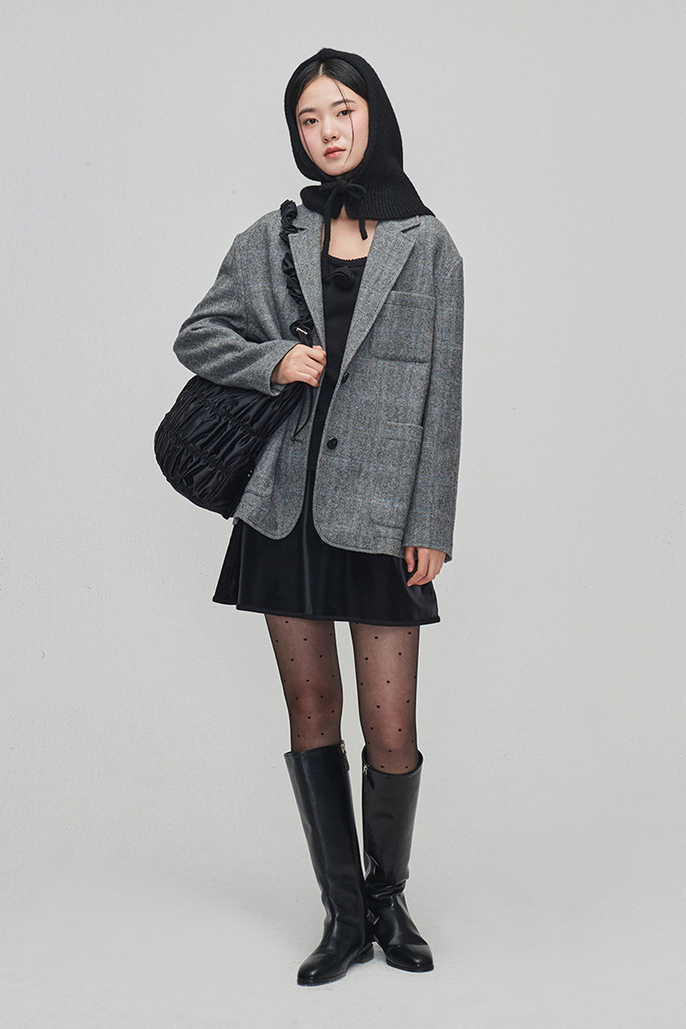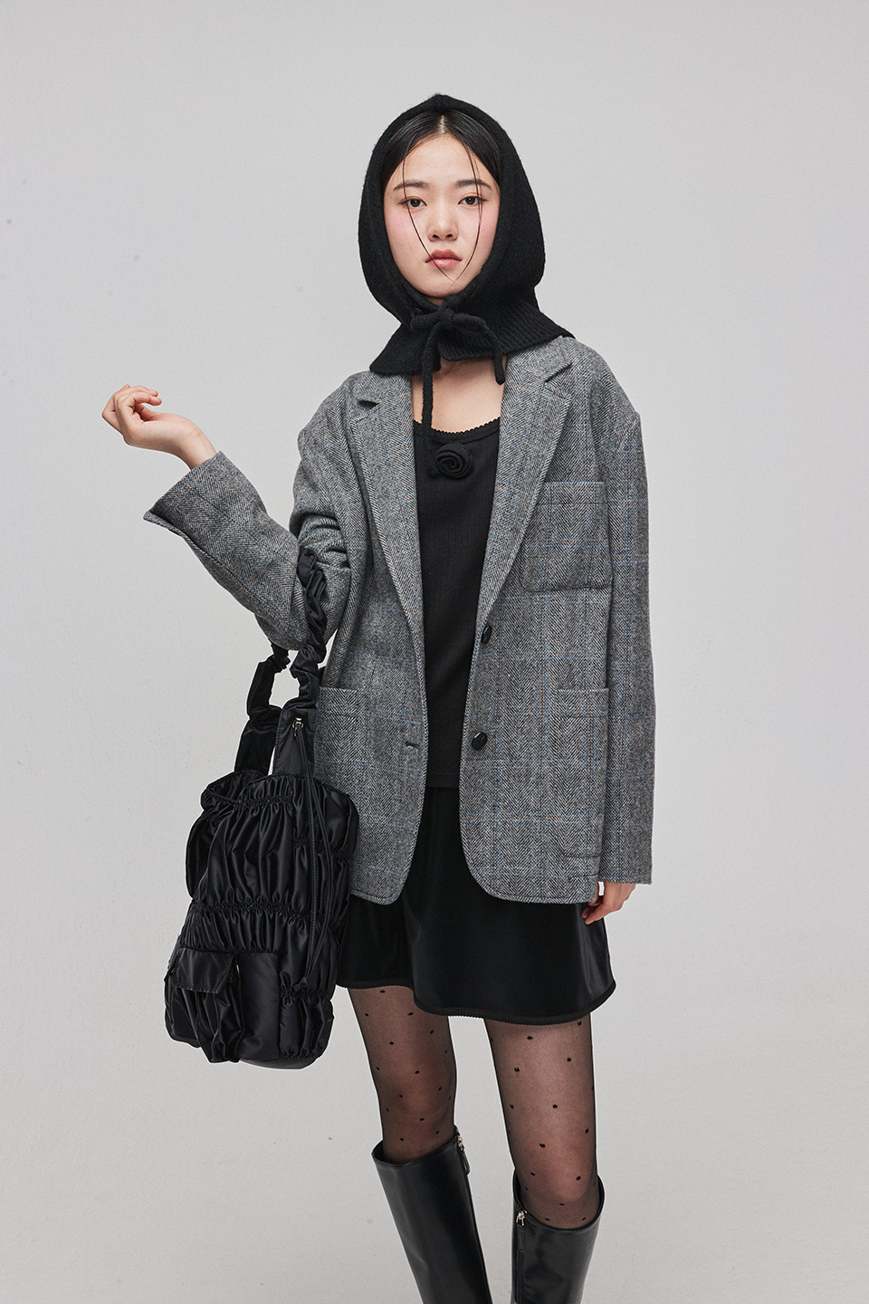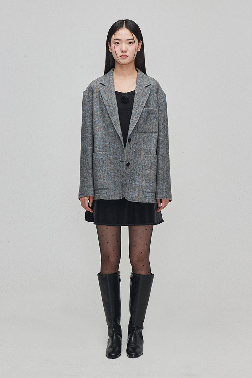 우먼즈 썸머울 오버사이즈 블레이저 [차콜 그레이]