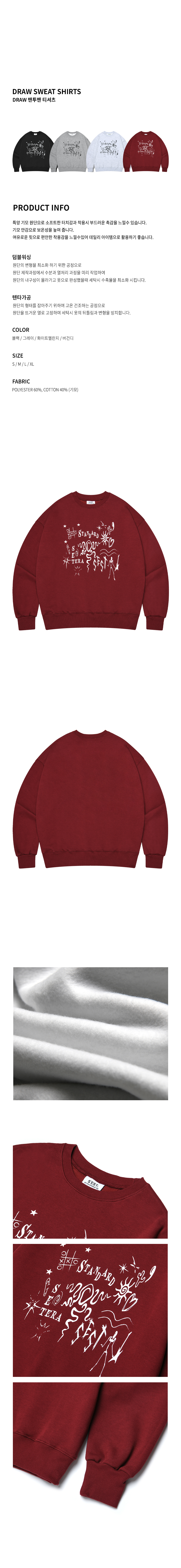 DRAW 맨투맨 티셔츠 - 버건디