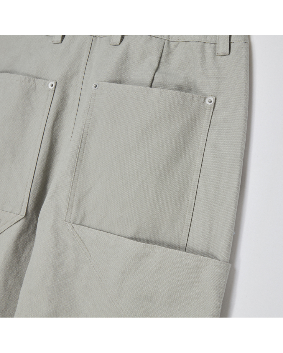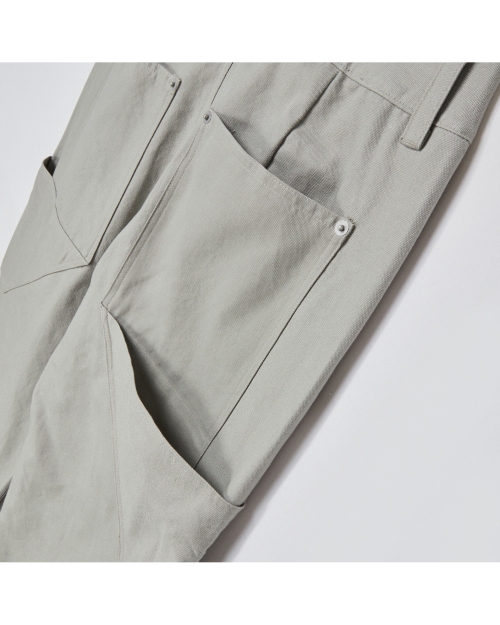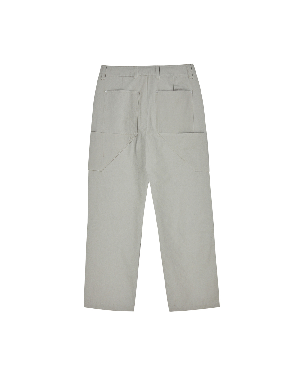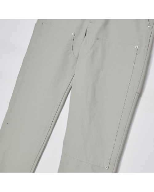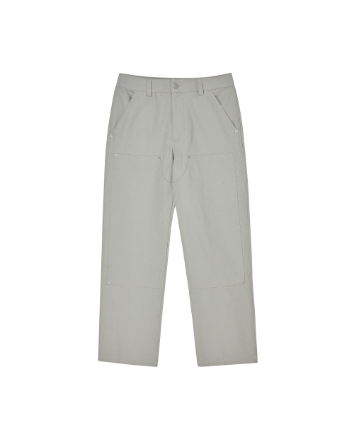 : 더블니 워크 팬츠의 실용성을 강조한 제품으로 비교적 얇은 캔버스 코튼을 사용해 4계절 내내 편하게 입을 수 있습니다. 원단 특성상 시간이 지남에 따라 경년변화를 느낄 수 있고 YKK의 지퍼와 캔톤 버튼 및 리벳을 사용하여 퀄리티 있게 메이킹했습니다. 아웃심의 3줄 스티치나 넓은 폭의 벨트 루프 등 워크 팬츠 카테고리의 분위기는 유지하되 백포켓의 구조를 실용적으로 변경하여 디자인적인 포인트와 함께 추가적인 수납구조를 확보했습니다. 레귤러한 스트레이트 핏으로 대부분의 상의 및 아우터와 조화롭게 어울어집니다.
