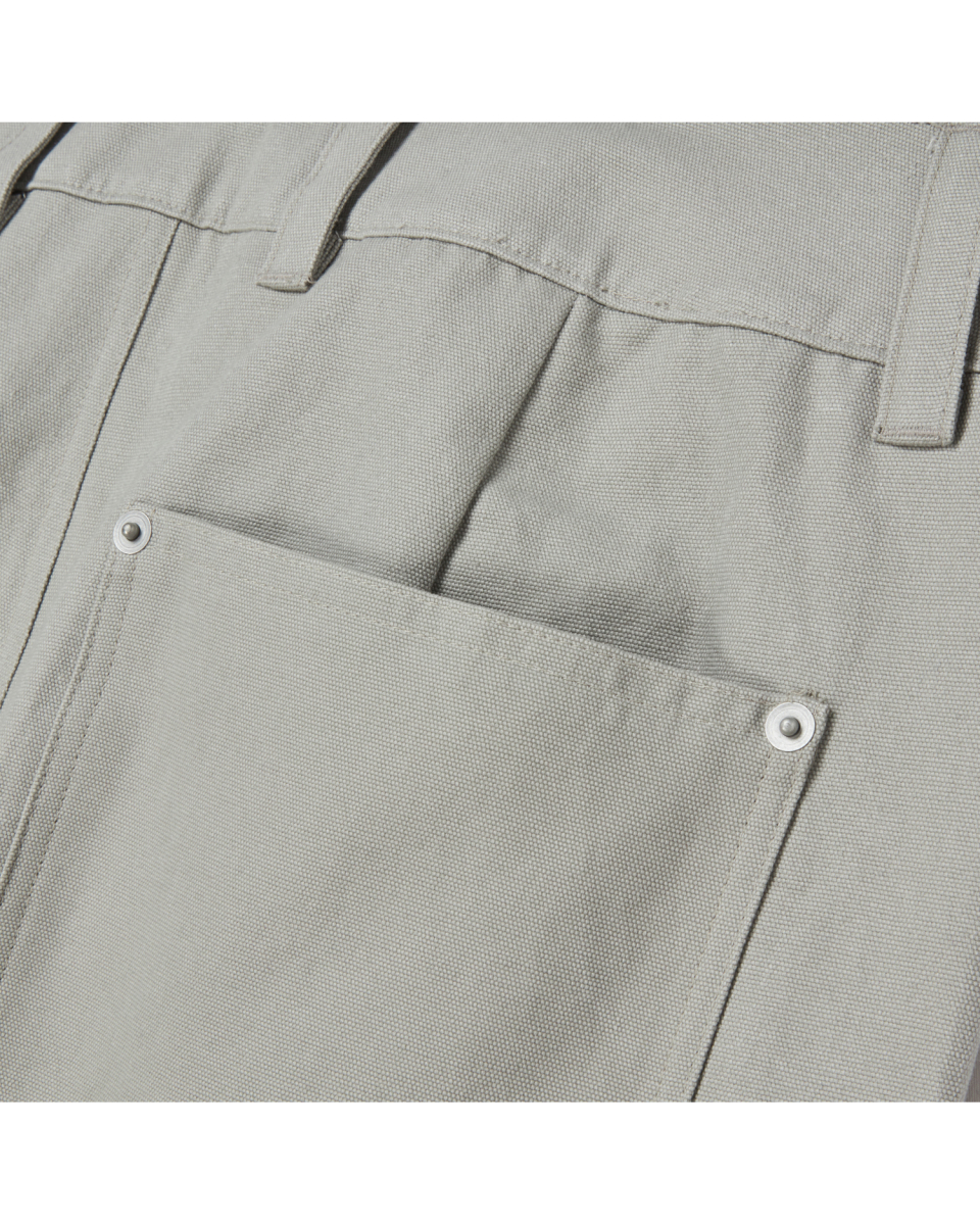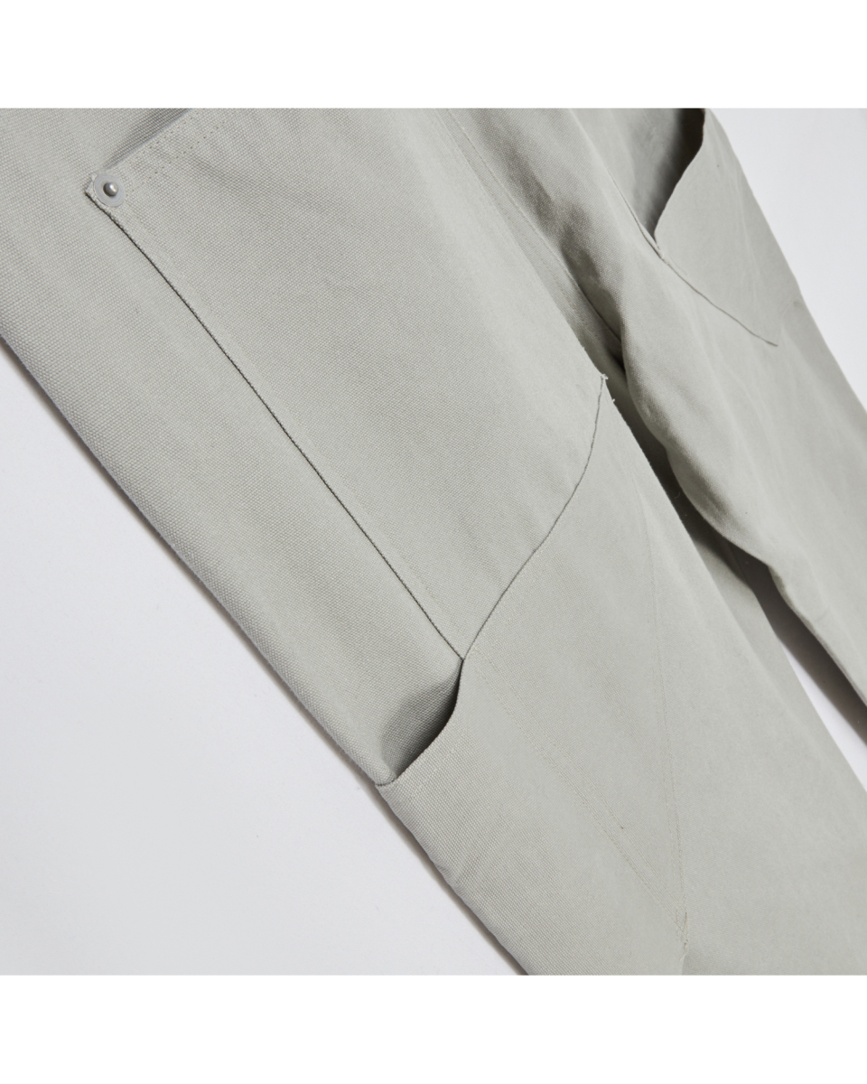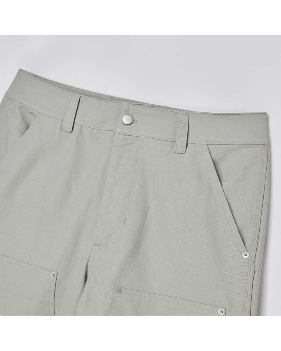 : 더블니 워크 팬츠의 실용성을 강조한 제품으로 비교적 얇은 캔버스 코튼을 사용해 4계절 내내 편하게 입을 수 있습니다. 원단 특성상 시간이 지남에 따라 경년변화를 느낄 수 있고 YKK의 지퍼와 캔톤 버튼 및 리벳을 사용하여 퀄리티 있게 메이킹했습니다. 아웃심의 3줄 스티치나 넓은 폭의 벨트 루프 등 워크 팬츠 카테고리의 분위기는 유지하되 백포켓의 구조를 실용적으로 변경하여 디자인적인 포인트와 함께 추가적인 수납구조를 확보했습니다. 레귤러한 스트레이트 핏으로 대부분의 상의 및 아우터와 조화롭게 어울어집니다.