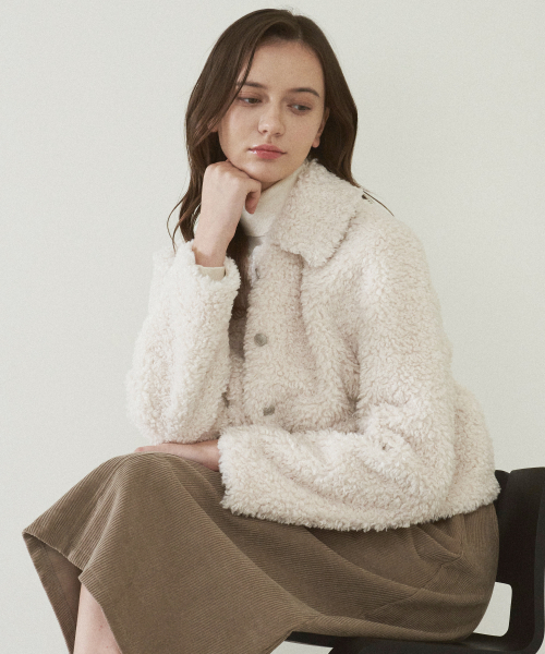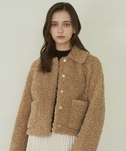 컬리 카라 퍼 자켓-베이지
