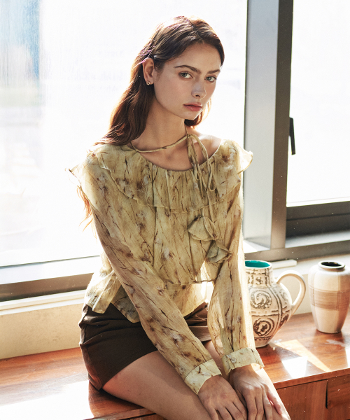 가든 플라워 타이 블라우스