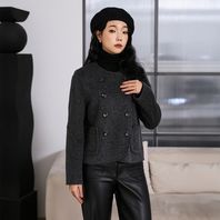 더블버튼 울 핸드메이드 라운드넥 숏코트