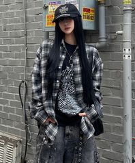 노마드 오버핏 체크 셔츠 블랙