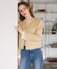 울 블렌드 엣지 탈착소매 트위드 자켓