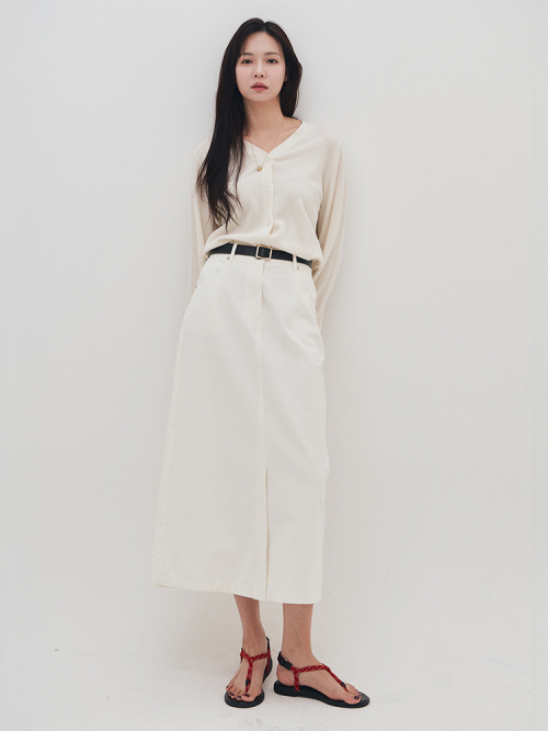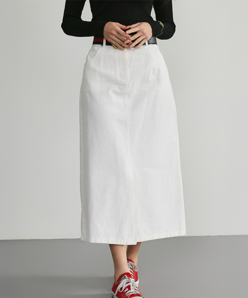 슬림 A라인 벨티드 면 롱스커트