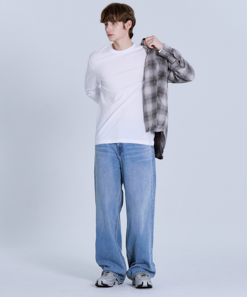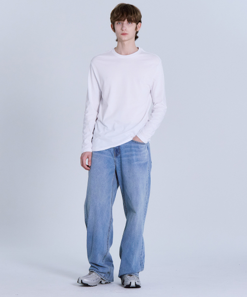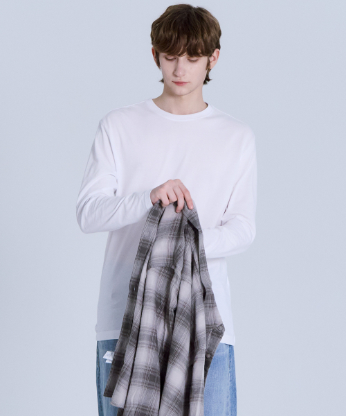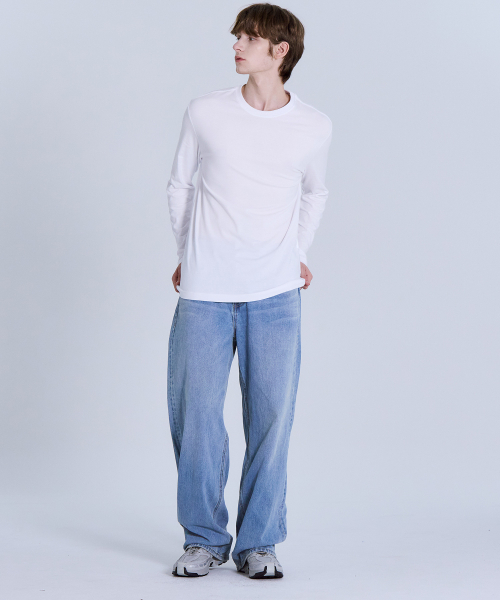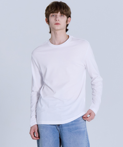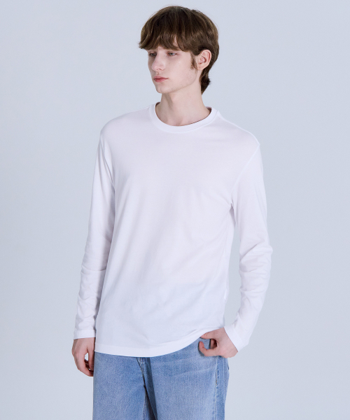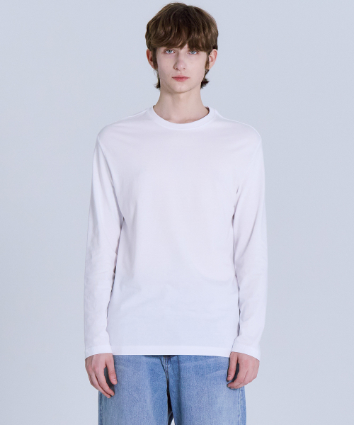 순면30수 릴렉스핏 라운드 긴팔 티셔츠 화이트 LATS0124