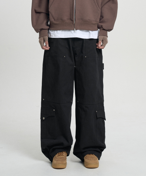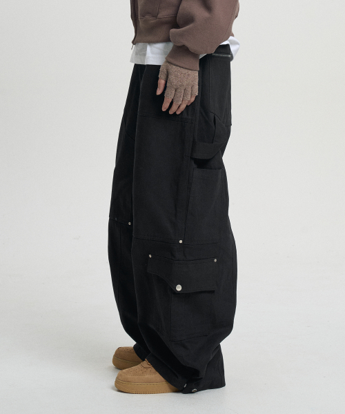 D링 워시드 커브드 카고 밴딩 팬츠_(2color)