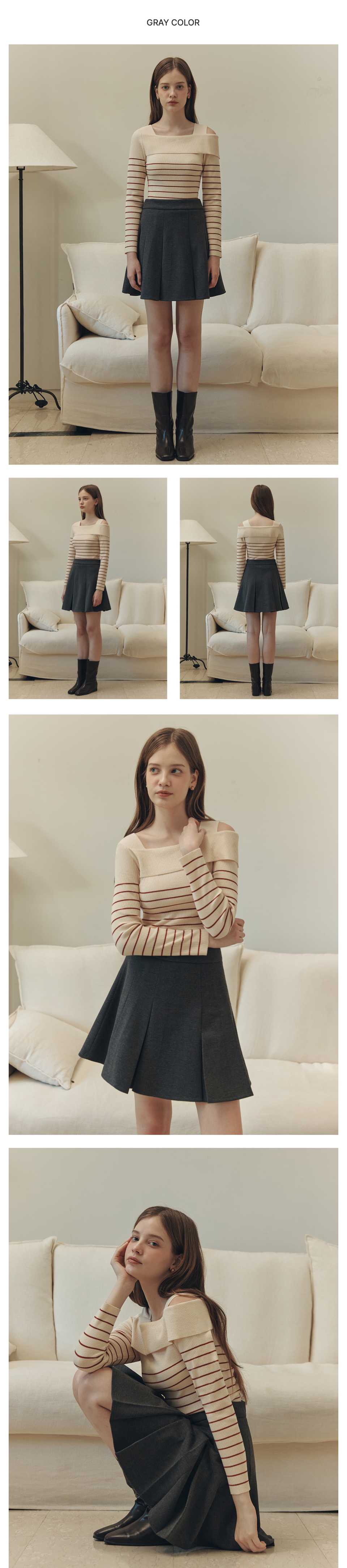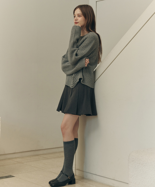 클라우디 플리츠 스커트 / 그레이