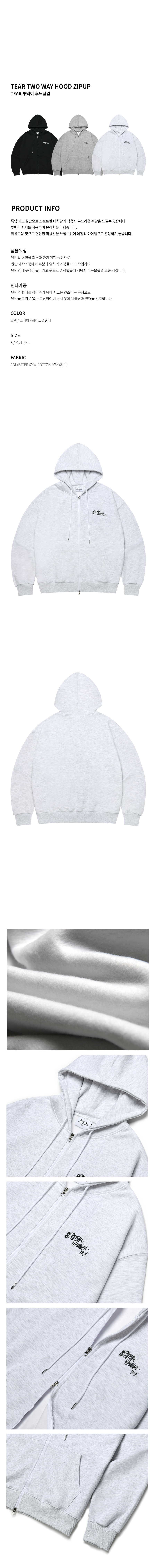 TEAR 투웨이 후드집업 - 화이트 멜란지