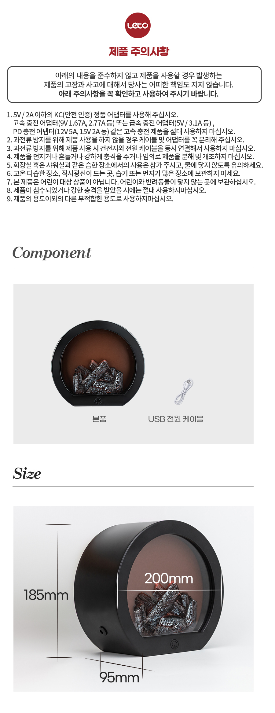 벽난로 불멍 무드등 LED 모닥불