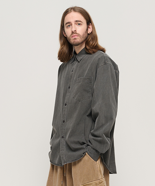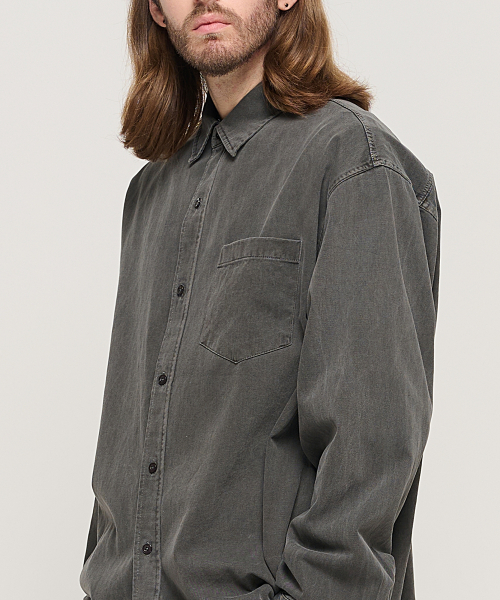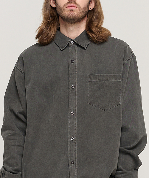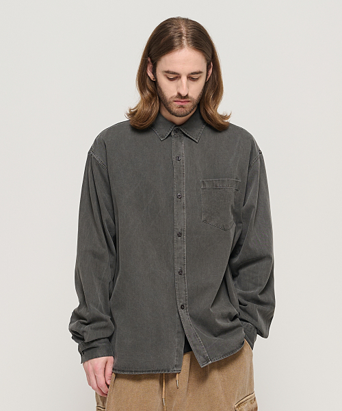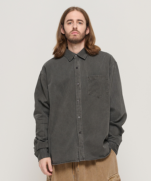 피그먼트 워시드 워크 셔츠 (차콜)