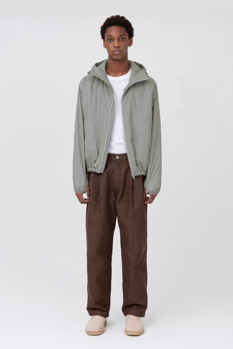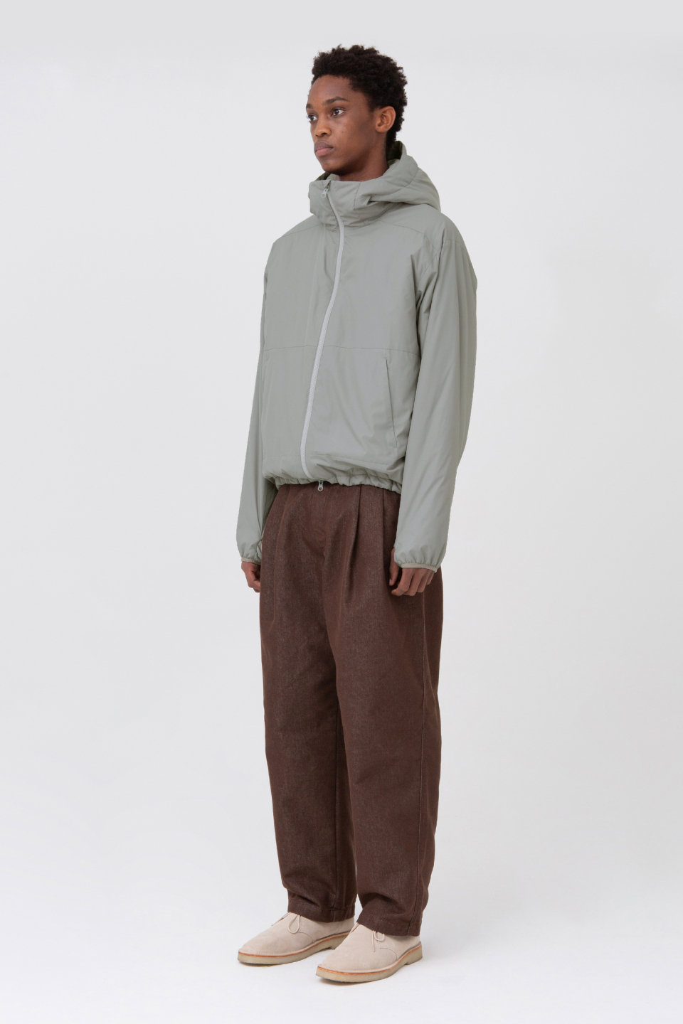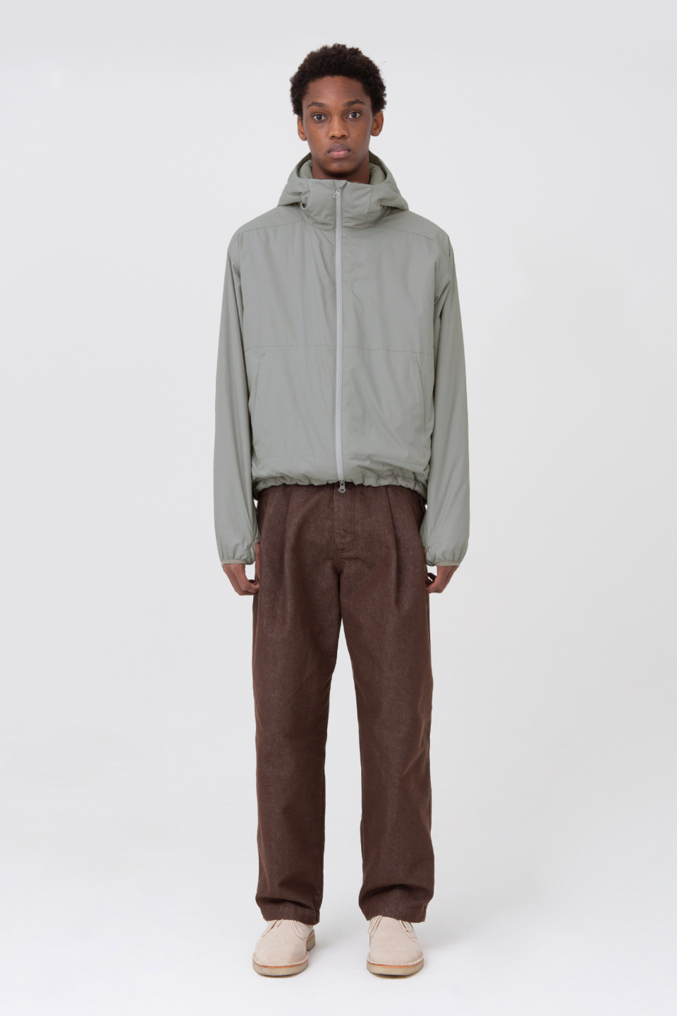 스탠다드 실루엣의 경량패딩 자켓인 라이트 후디드 자켓입니다.