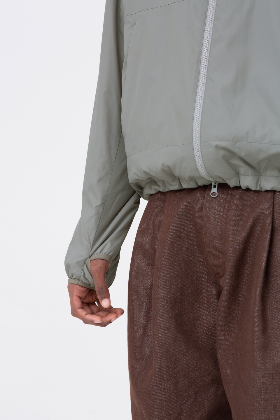 밑단의 스트링과 후드 스트링을 활용하여 실루엣 조절이 가능하며, 엄지를 넣을 수 있는 썸홀을 추가하여 따뜻하게 착용할 수 있습니다.