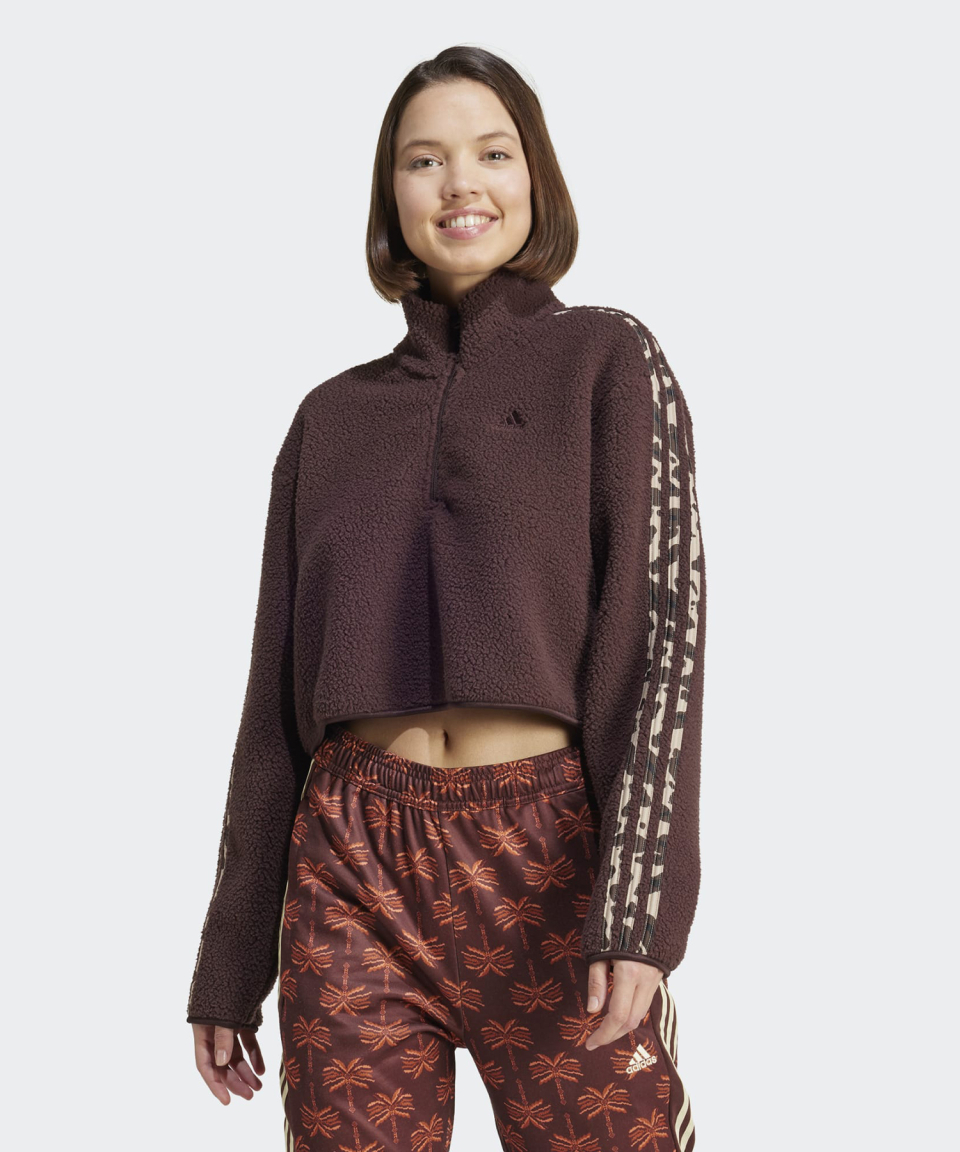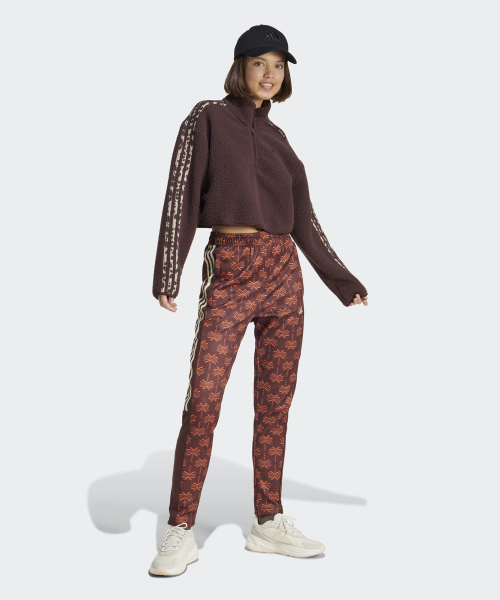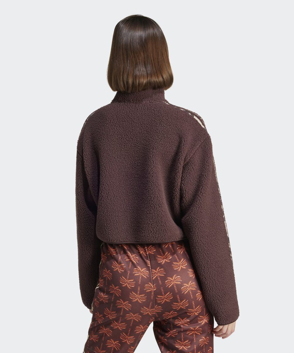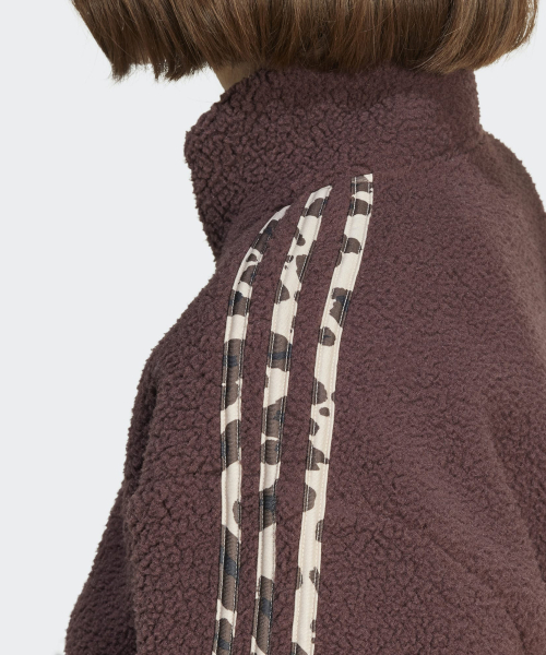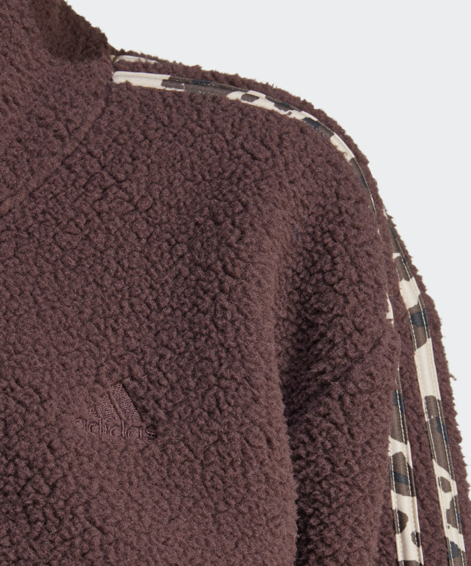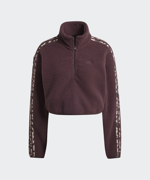 애니멀 프린트 플리스 크롭 반집업 탑 - 브라운 / IY5010