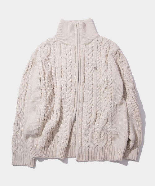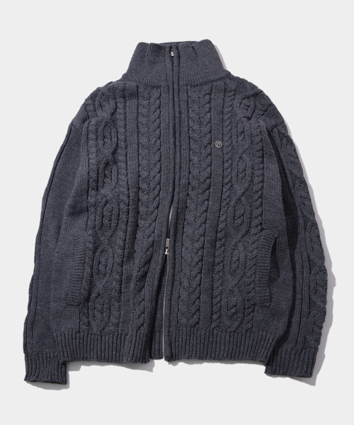 하이넥 오버핏 투웨이 케이블 니트 풀집업 가디건 _3COLOR