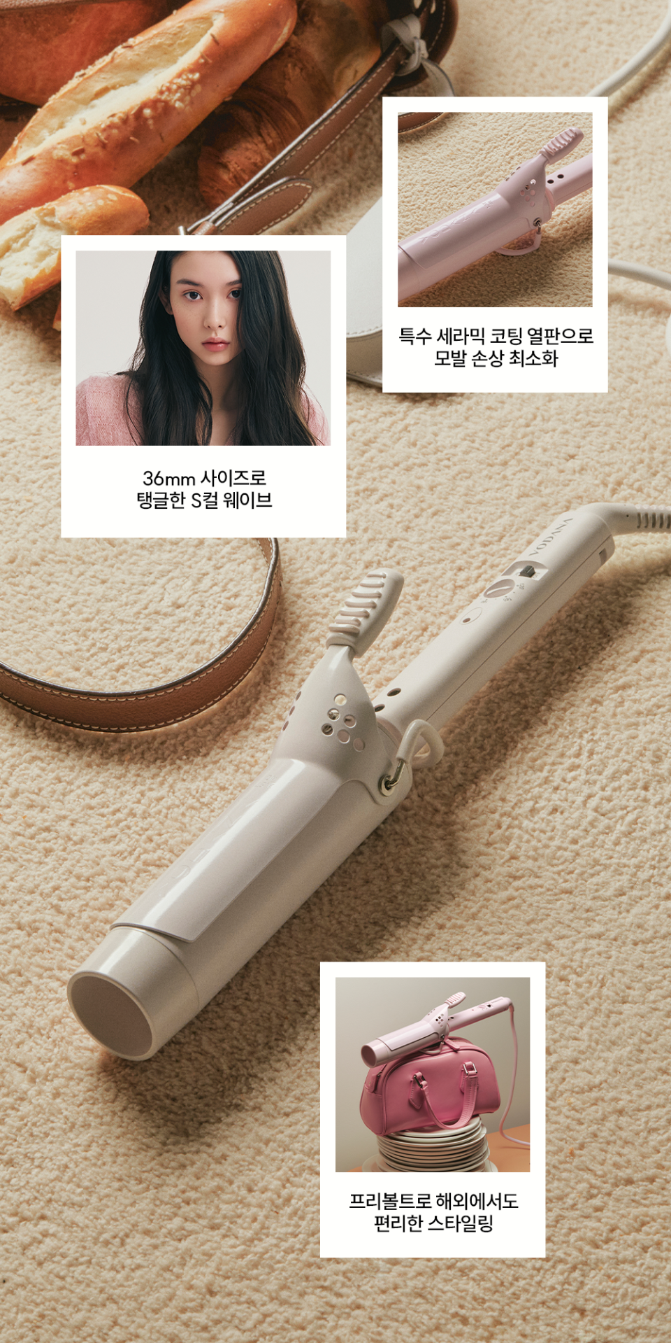 글램웨이브 롱 봉 고데기 38mm 아이보리무드