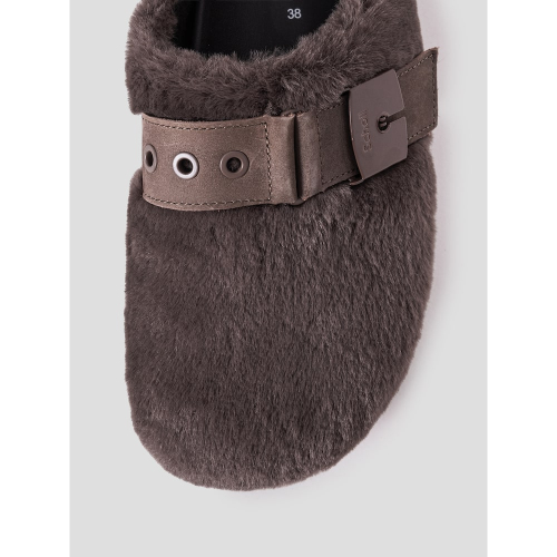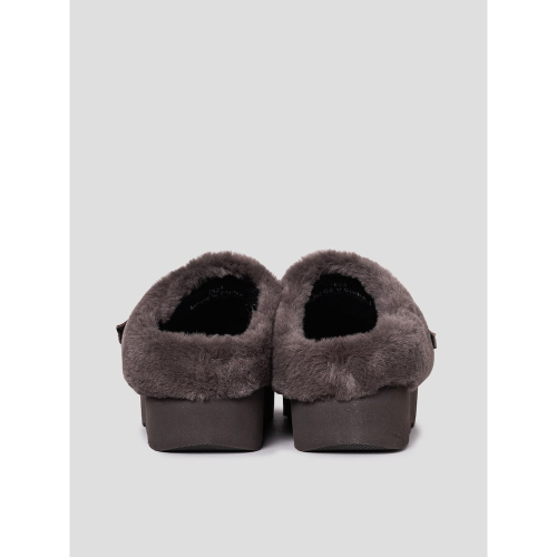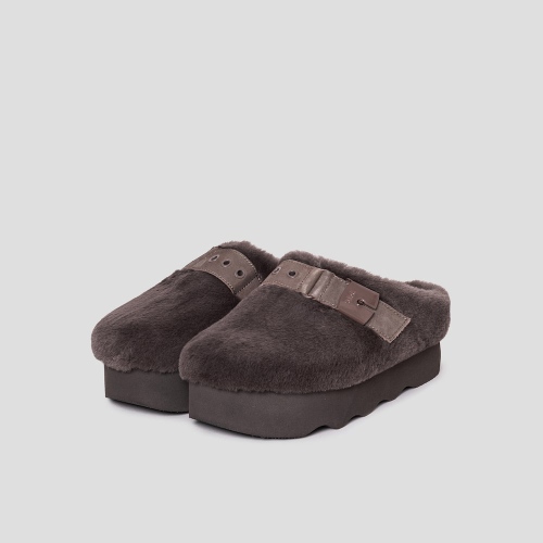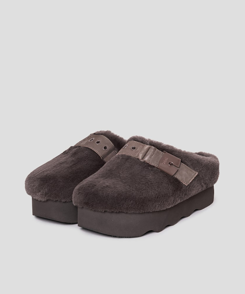 겉면을 감싼 인조 털이 따뜻함과 고급스러움을 자아내는 크로그입니다. 발등 부분의 가죽 띠와 큼직한 버클 디테일이 트렌디한 느낌을 주는 아이템입니다. 겉창의 물결 무늬는 시각적 매력을 더하고, 미끄럼 방지 기능으로 안정성을 보장합니다. 높은 굽은 키높이 효과를 더해 다양한 착장을 더욱 멋스럽게 연출할 수 있습니다.