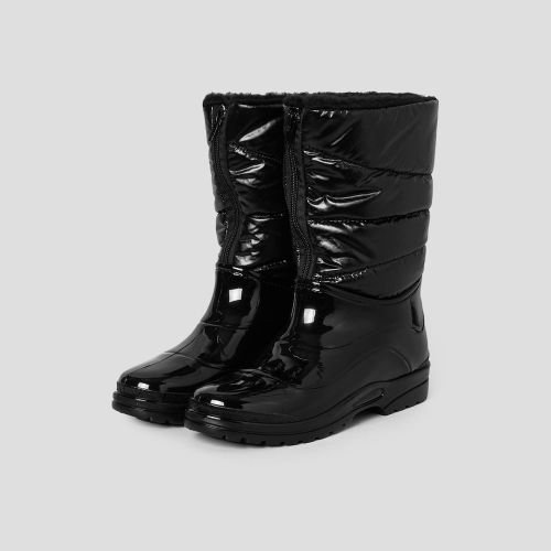중간 기장의 가죽 부츠입니다. 지면에 가까운 부분은 방수성이 뛰어난 PVC로 코팅하여 물이나 습기에 강합니다. 윗부분은 패딩 소재로 가볍고 유연하여 편안한 착용감을 선사하고, 외부의 추위를 효과적으로 차단하여 체온을 유지시켜 줍니다. 발을 부드럽게 감싸는 메모리 쿠션 밑창은 마치 구름 위를 걷는 듯한 푹신함을 제공하며, 장시간 착용에도 편안함을 유지합니다.