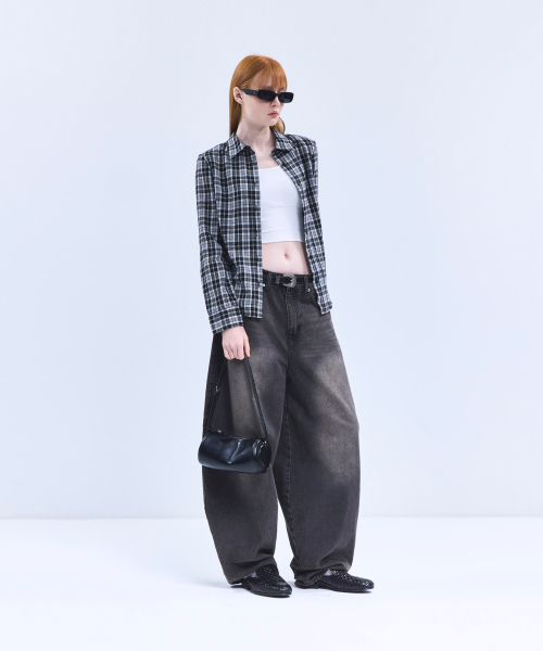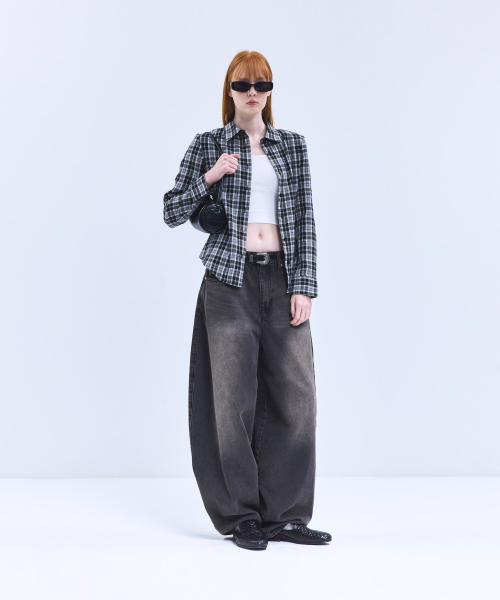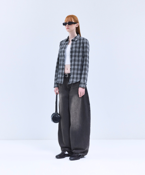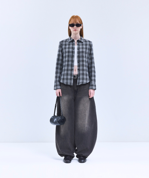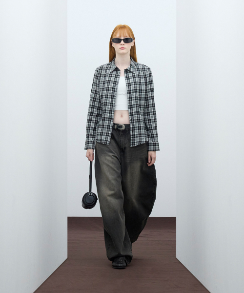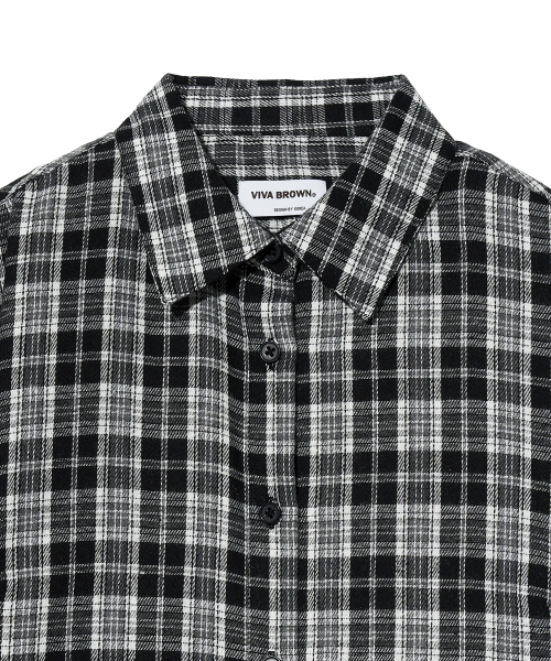85-VIVA088 하운드 크롭 긴팔 체크 셔츠 브라운
