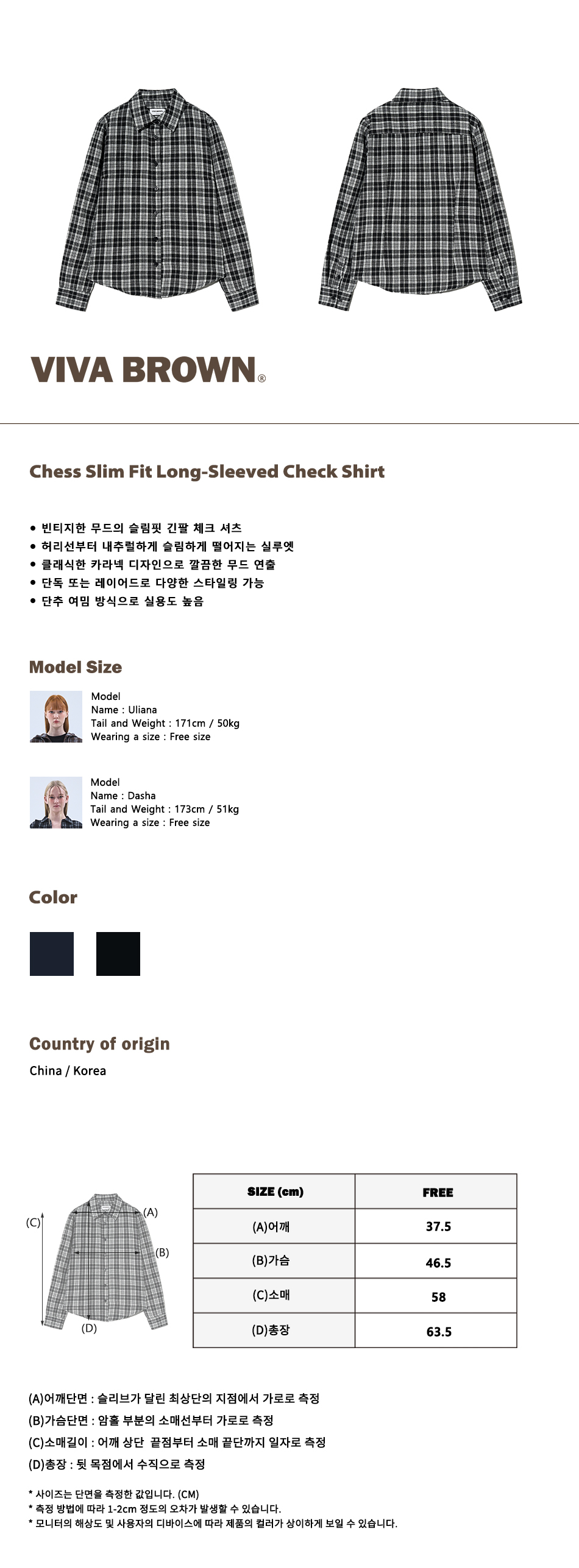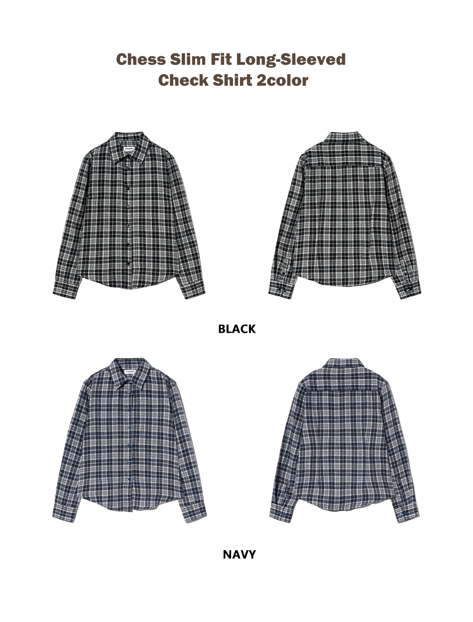 85-VIVA077 체스 슬림핏 긴팔 체크 셔츠 블랙