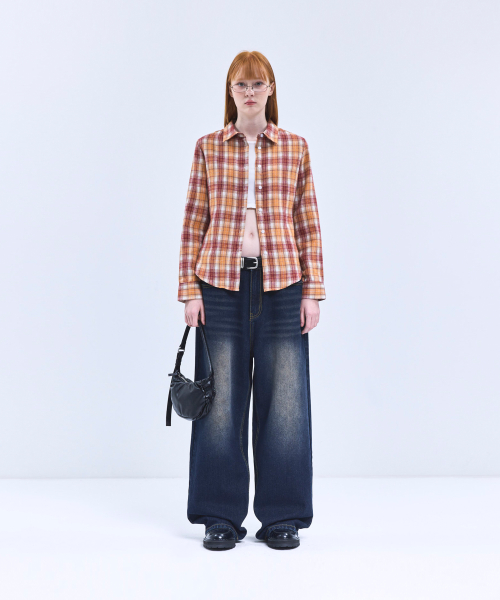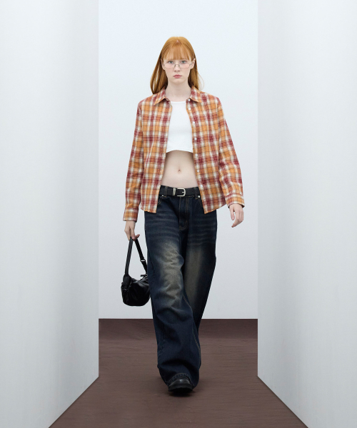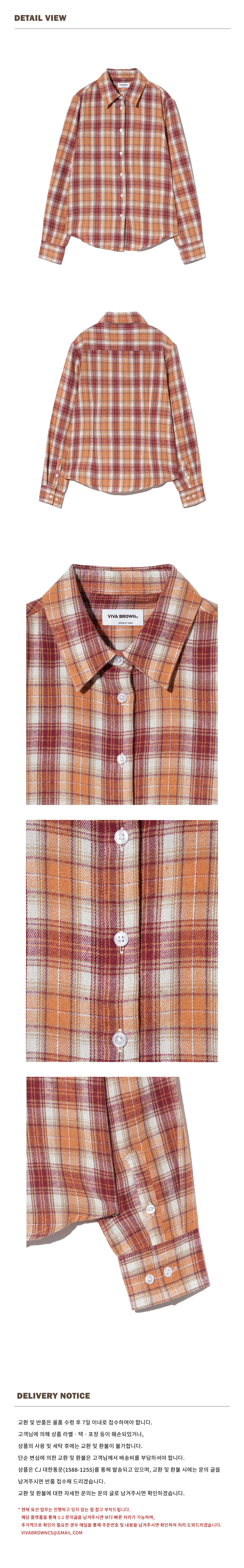 85-VIVA084 컬러팝스 슬림핏 긴팔 체크 셔츠 오렌지
