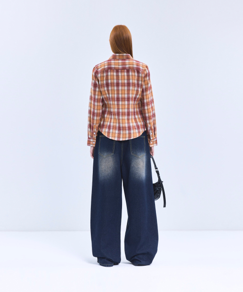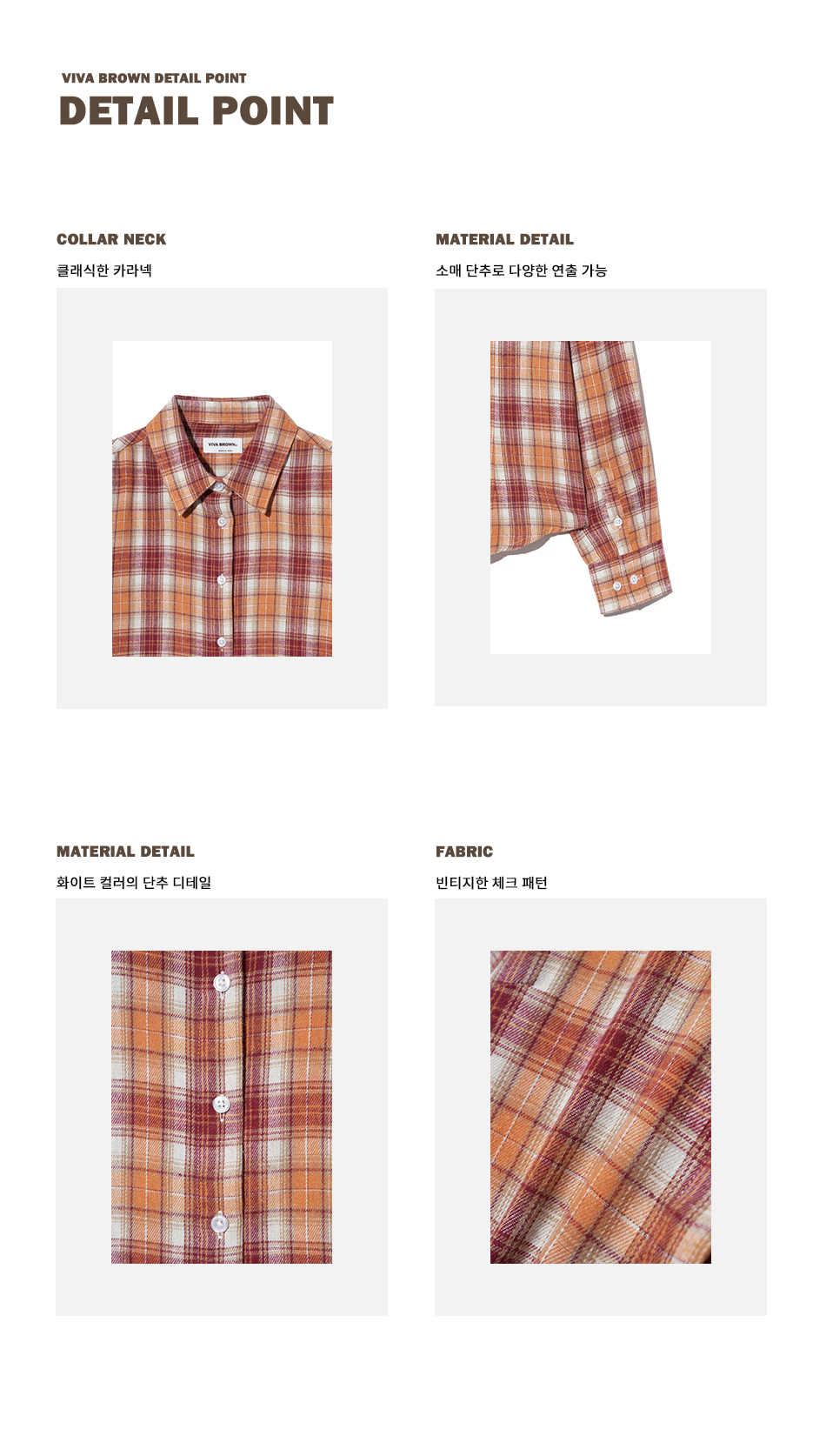 85-VIVA069 레트로 긱 무드 오버핏 포켓 긴팔 체크 셔츠 브라운