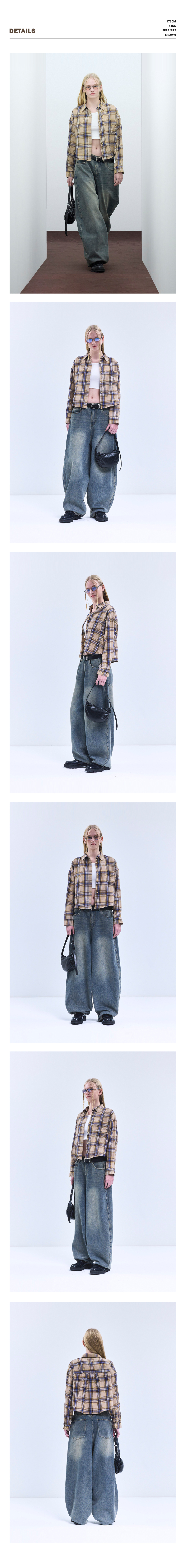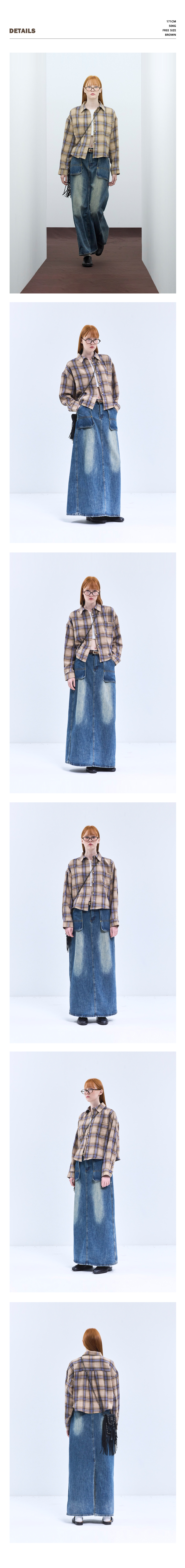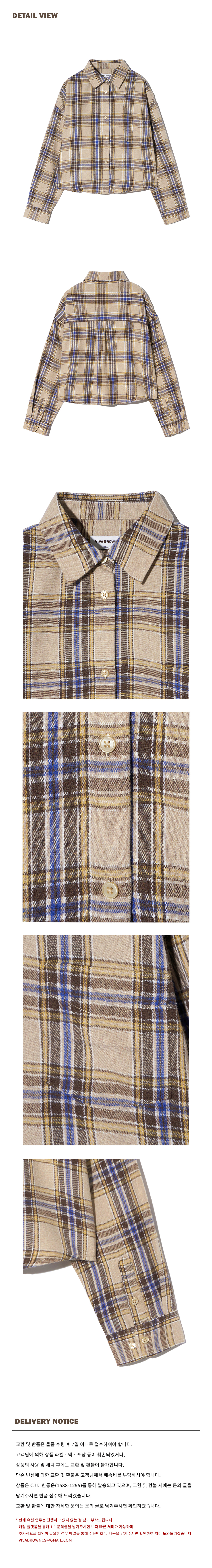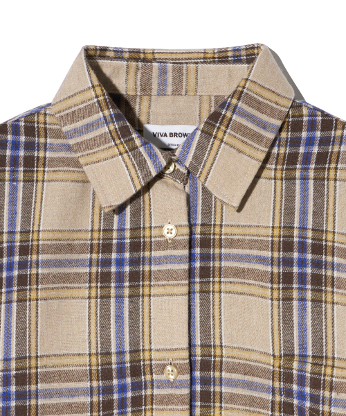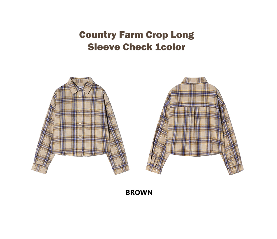 85-VIVA096 컨트리 팜 크롭 긴팔 체크 셔츠 브라운
