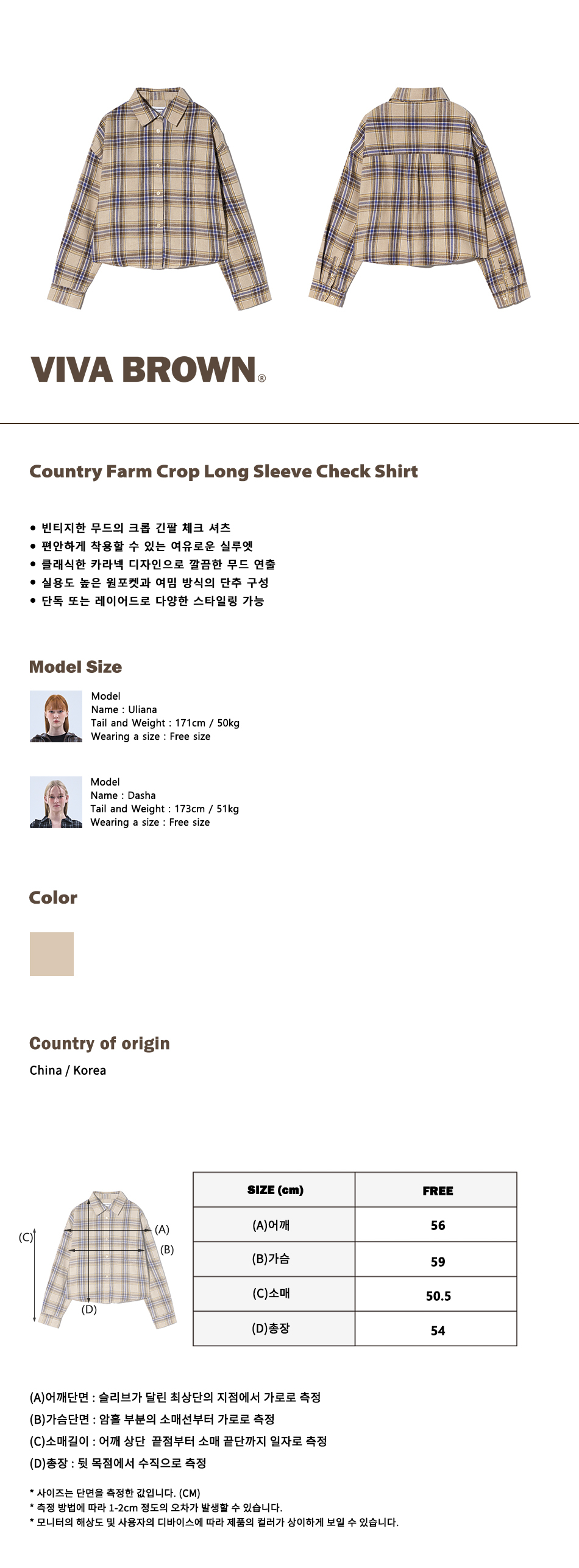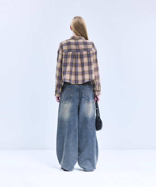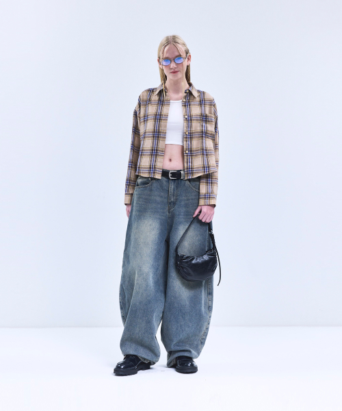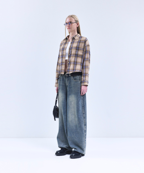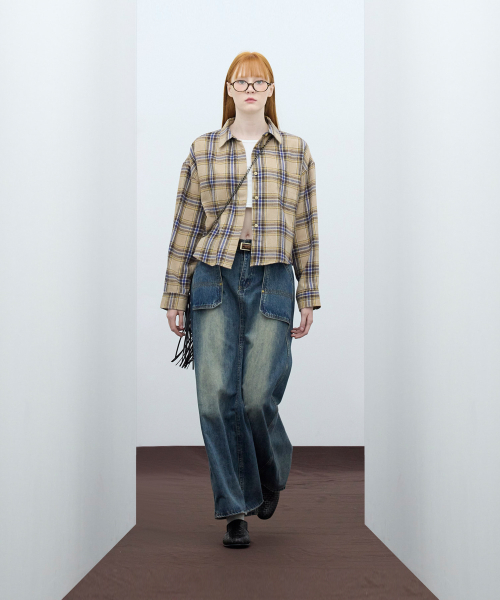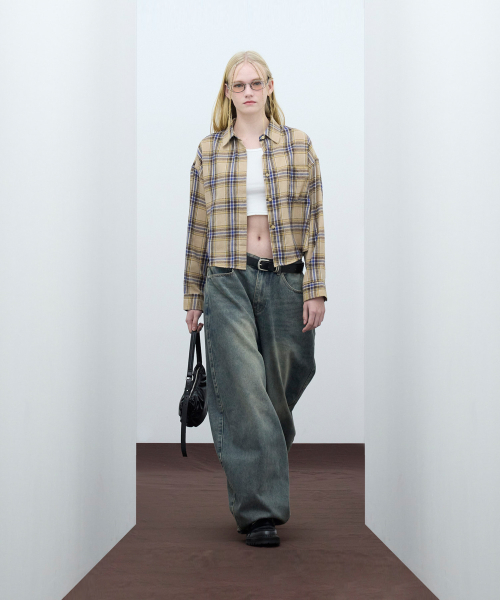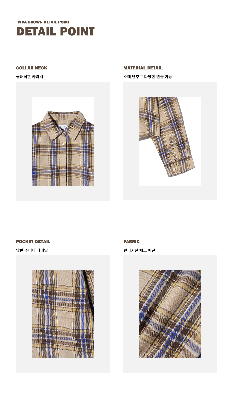 85-VIVA096 컨트리 팜 크롭 긴팔 체크 셔츠 브라운