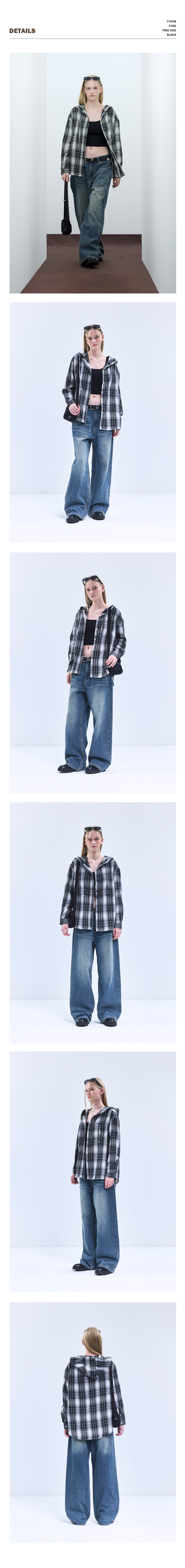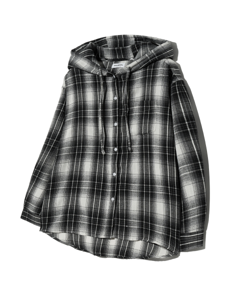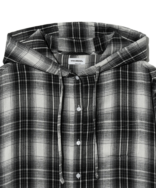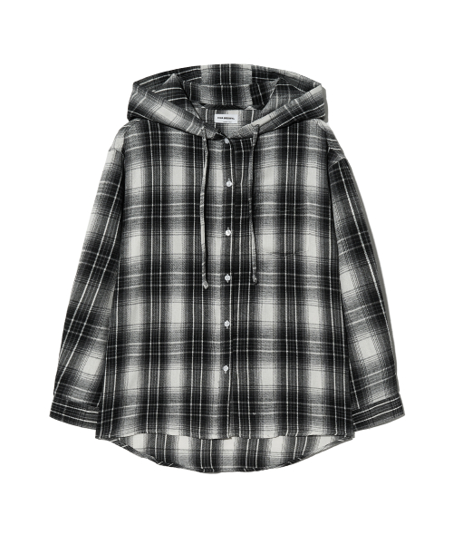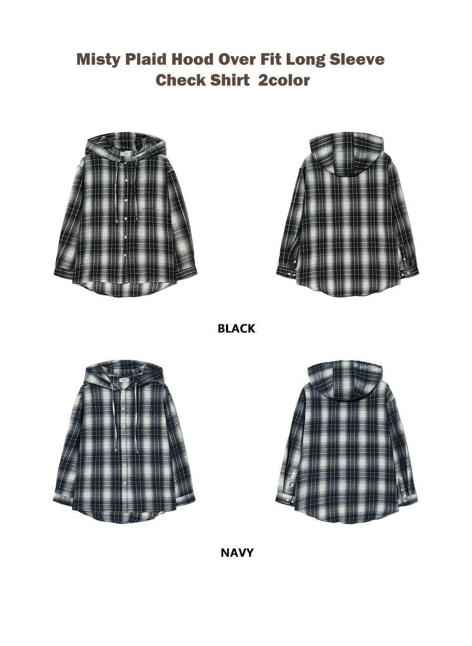 85-VIVA101 미스티 플레이드 후드 오버핏 긴팔 체크 셔츠 블랙