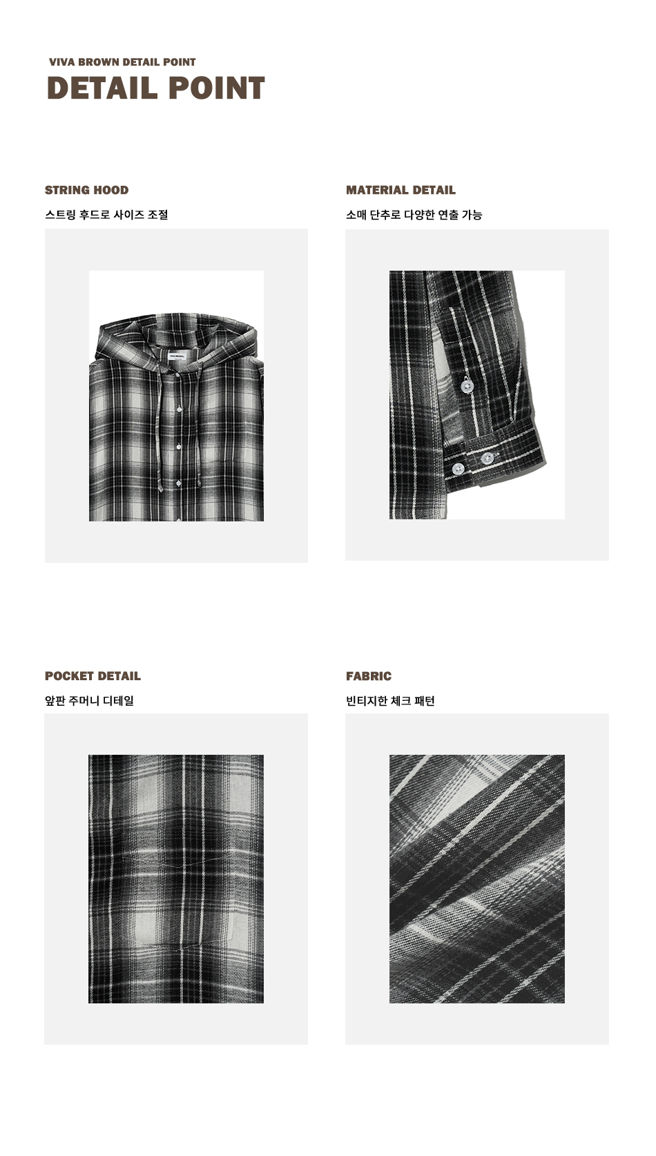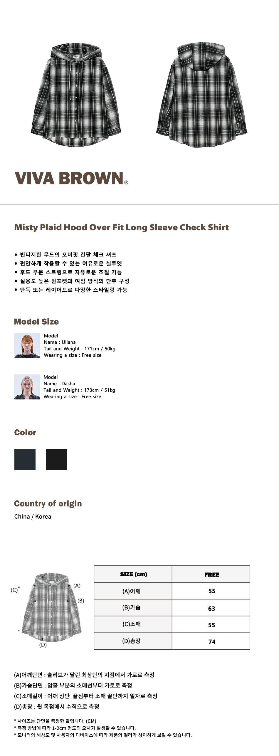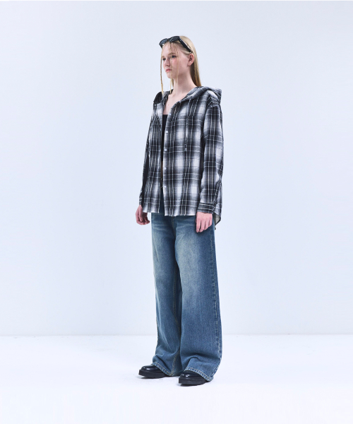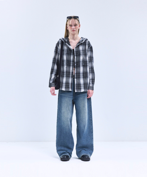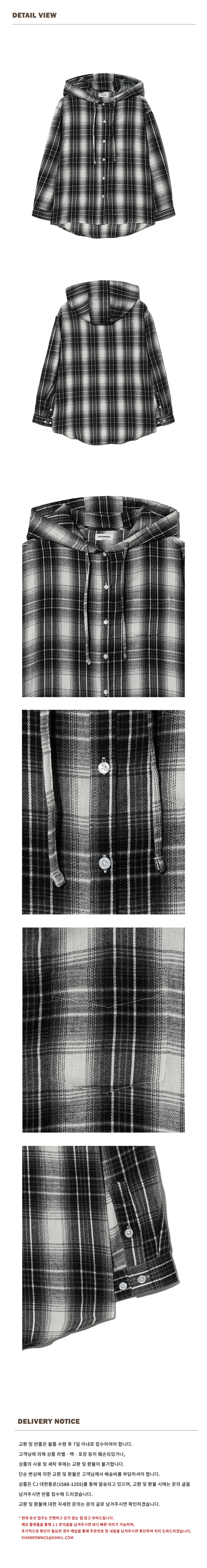 85-VIVA101 미스티 플레이드 후드 오버핏 긴팔 체크 셔츠 블랙