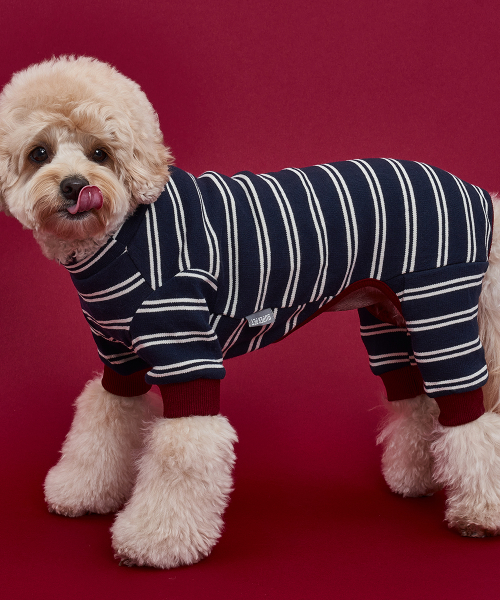 강아지 트윈 단가라 올인원 네이비