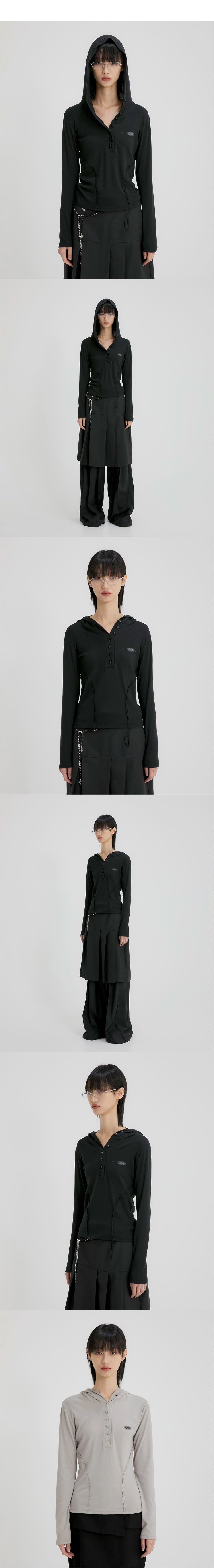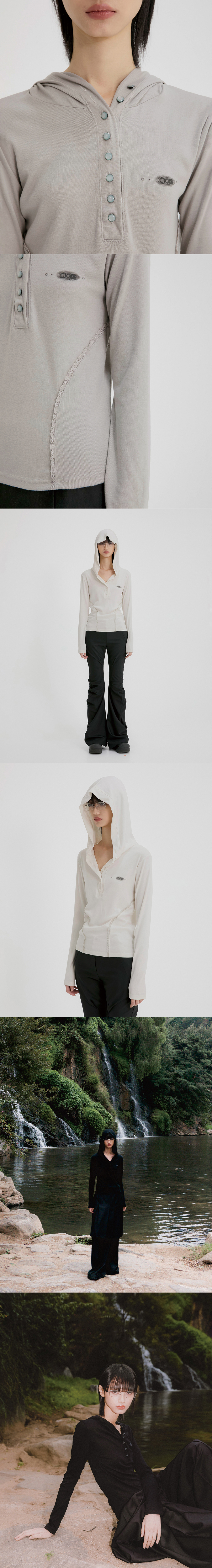 Button Up Lace Hoodie (FL-148_Black)